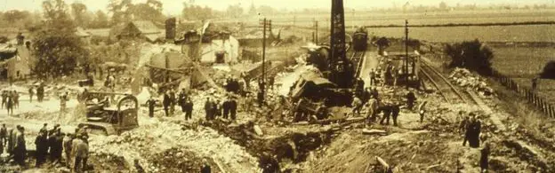 In June 1944, a train carrying approximately 400 tons of American high explosive bombs passed through the small village of Soham in Cambridgeshire. The driver noticed that the lead wagon, which was carrying approximately 10 tons of bombs, was on fire.